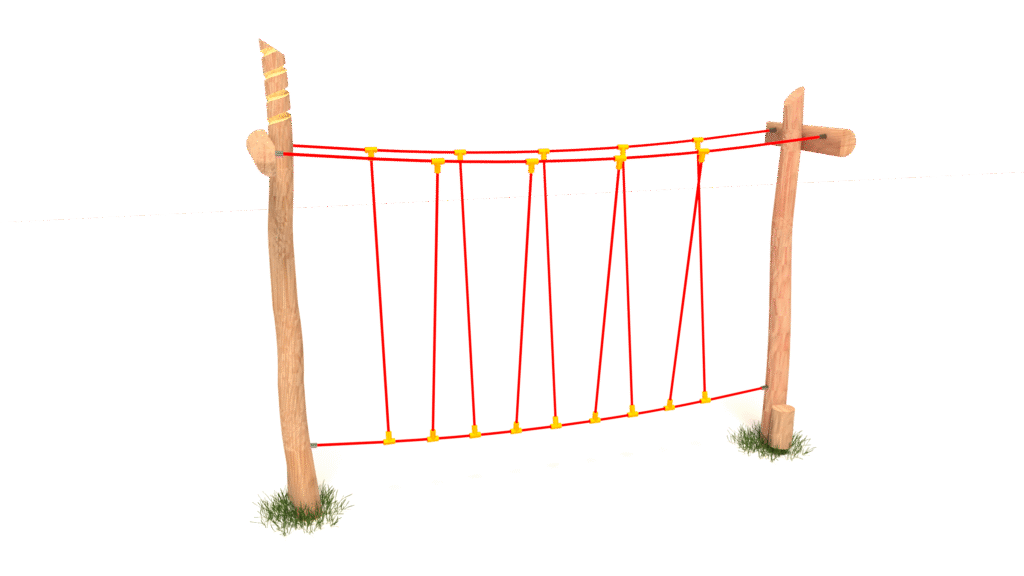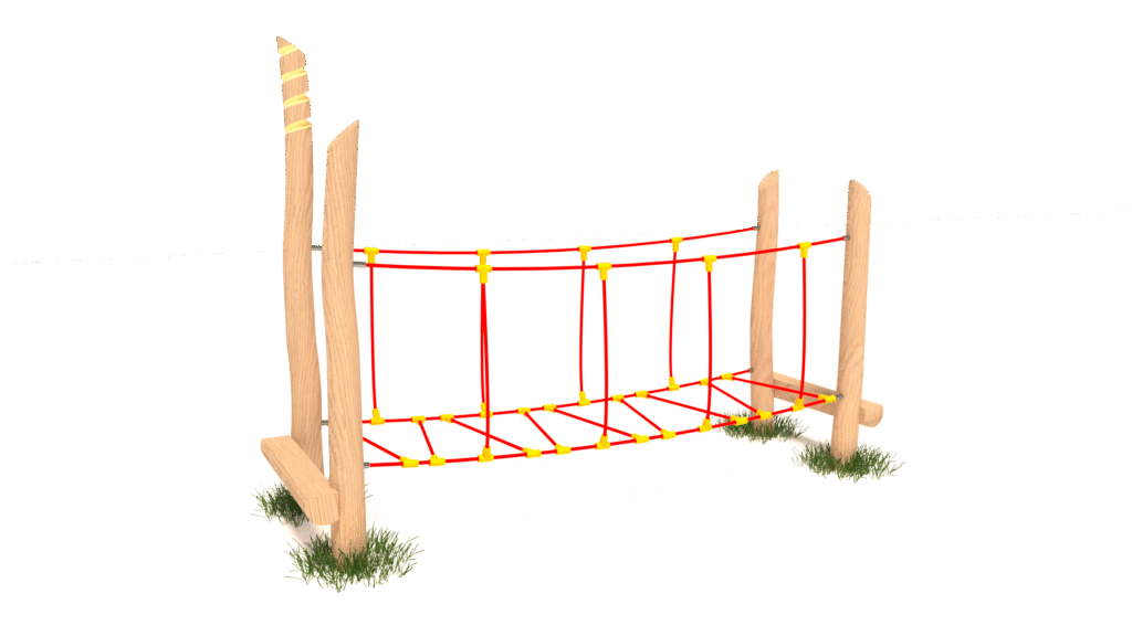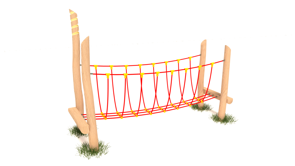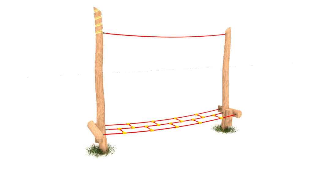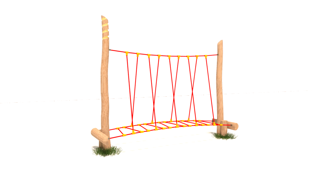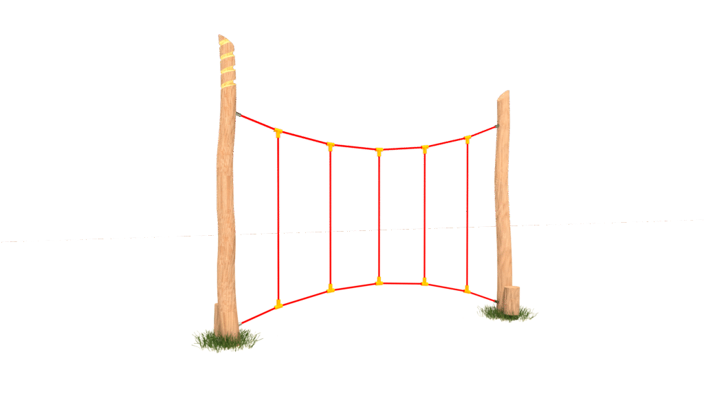 Lanový mostek INDO je atraktivní a bezpečný herní prvek, který rozvíjí rovnováhu, koordinaci a motorické dovednosti dětí. Díky kombinaci akátových sloupů a husté sítě z kvalitního lanového materiálu poskytuje mostek stabilní, ale zároveň dynamickou cestu přes „lanovou lávku“. Je ideální součástí přírodních hřišť, kde děti mohou zažít dobrodružství a zároveň si posílit tělo i odvahu.