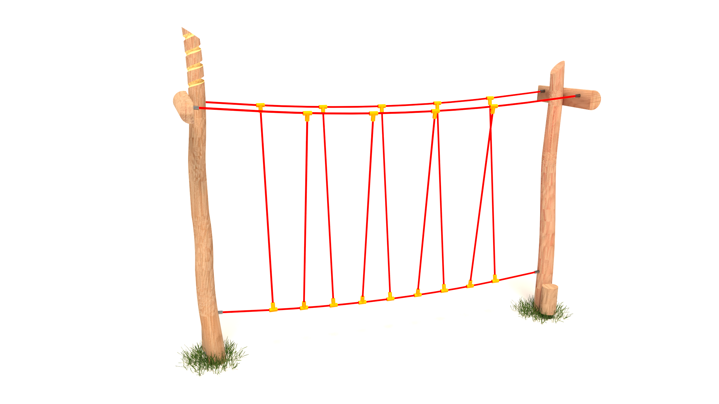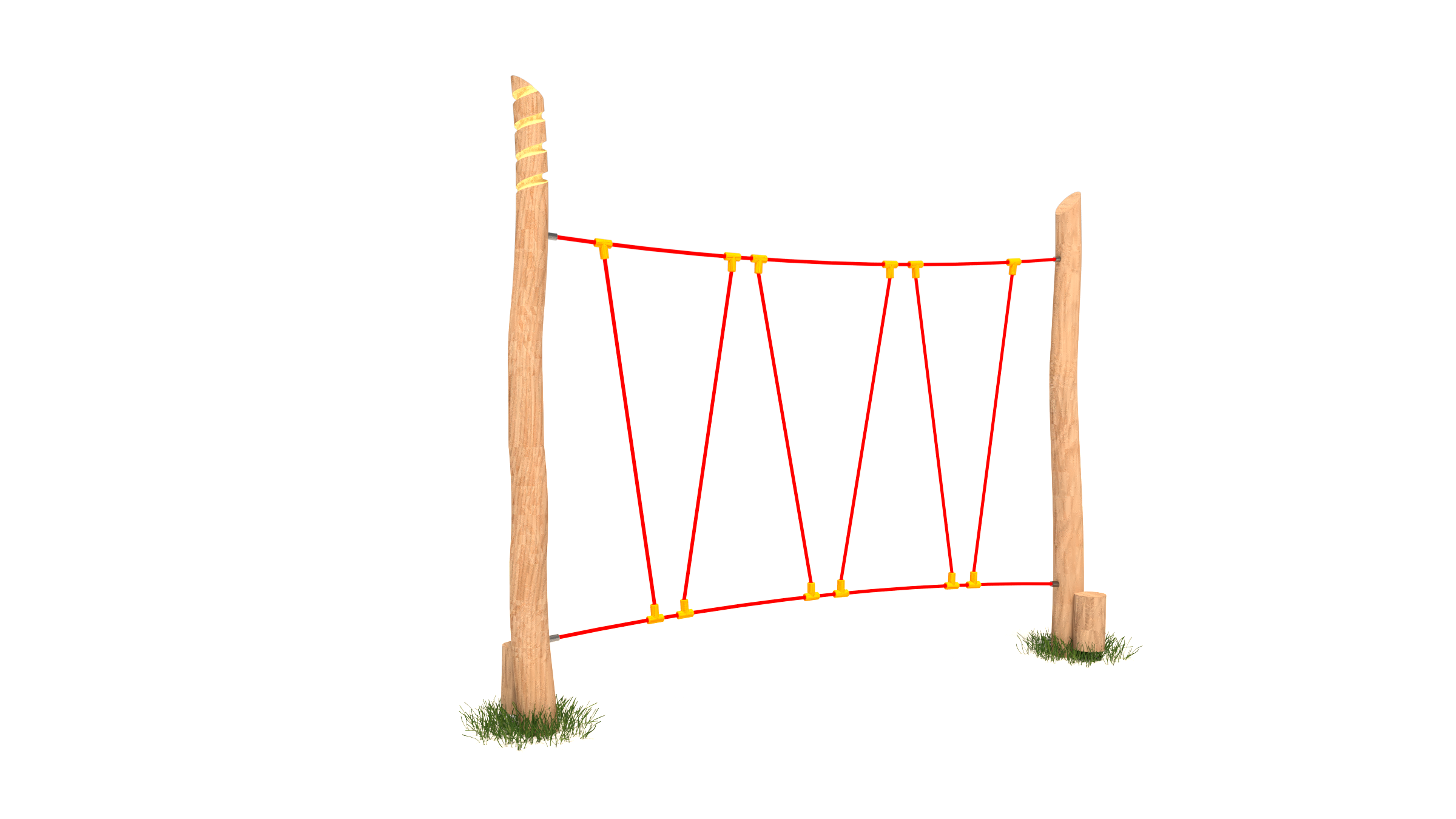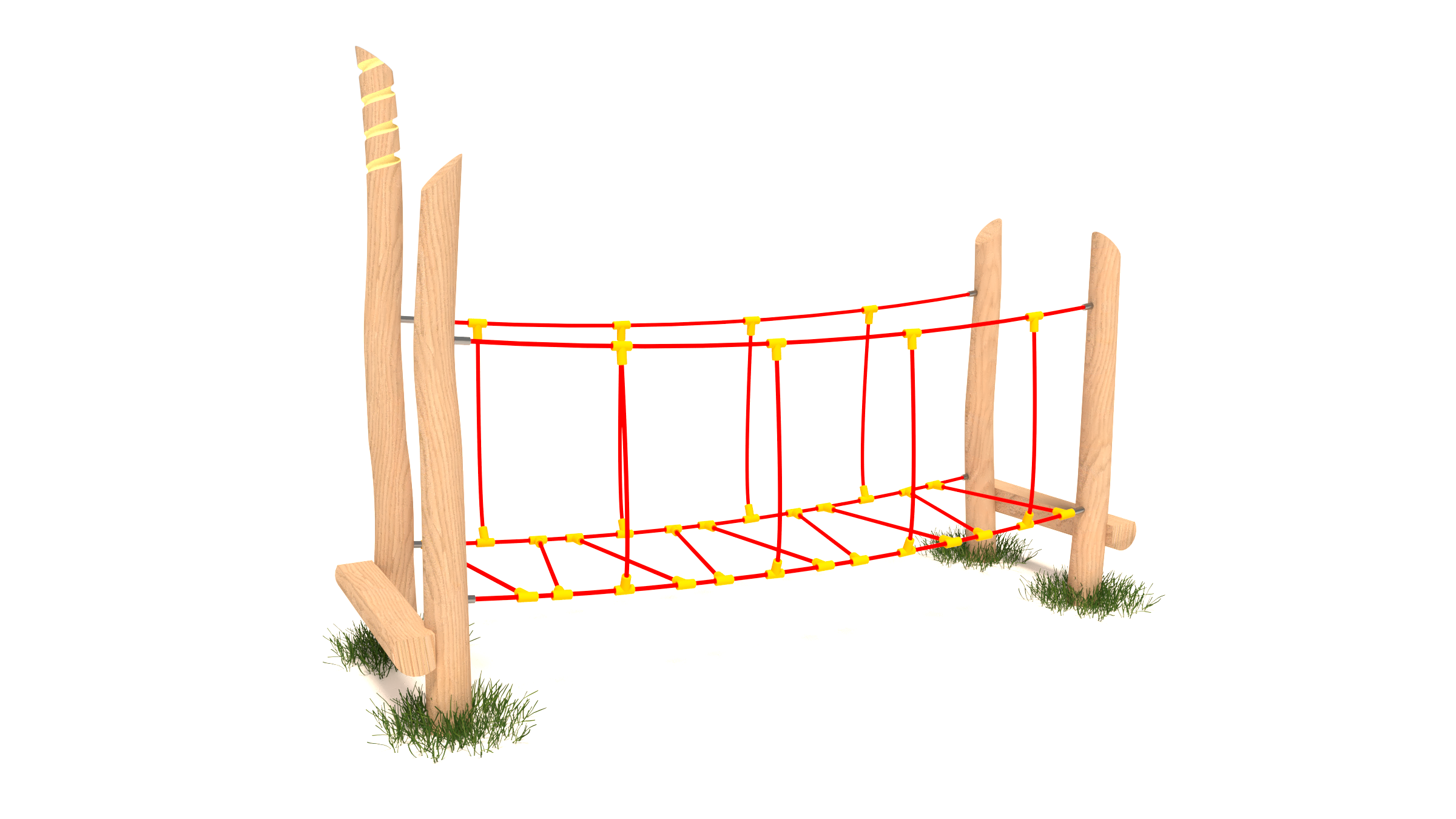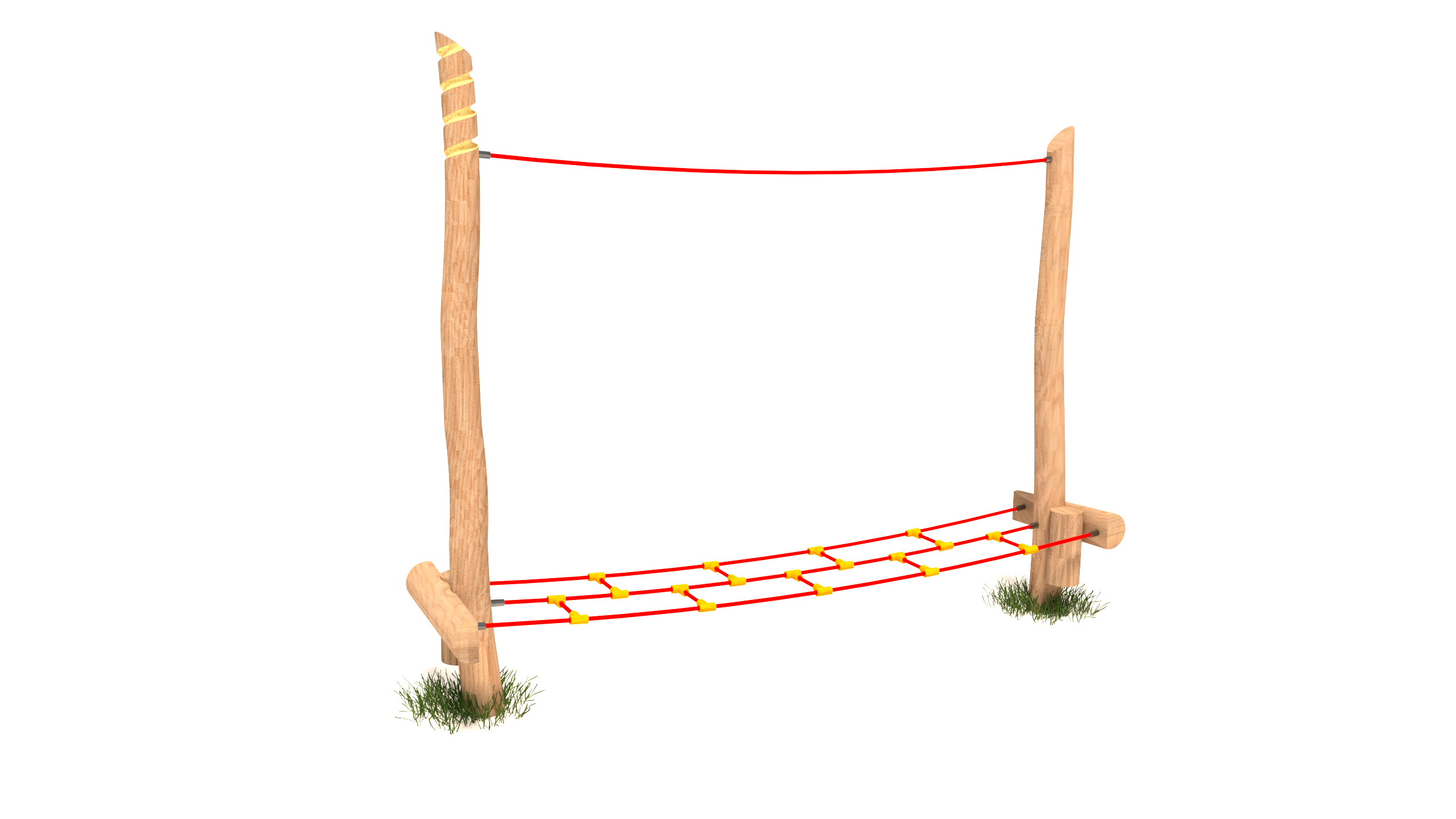 Lanový mostek INDO je atraktivní a bezpečný herní prvek, který rozvíjí rovnováhu, koordinaci a motorické dovednosti dětí. Díky kombinaci akátových sloupů a husté sítě z kvalitního lanového materiálu poskytuje mostek stabilní, ale zároveň dynamickou cestu přes „lanovou lávku“. Je ideální součástí přírodních hřišť, kde děti mohou zažít dobrodružství a zároveň si posílit tělo i odvahu.