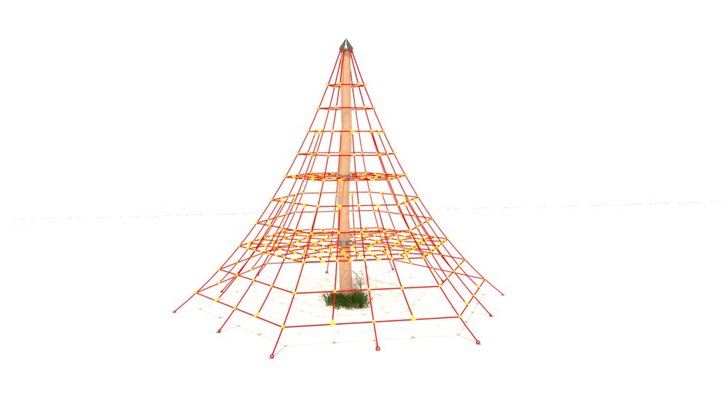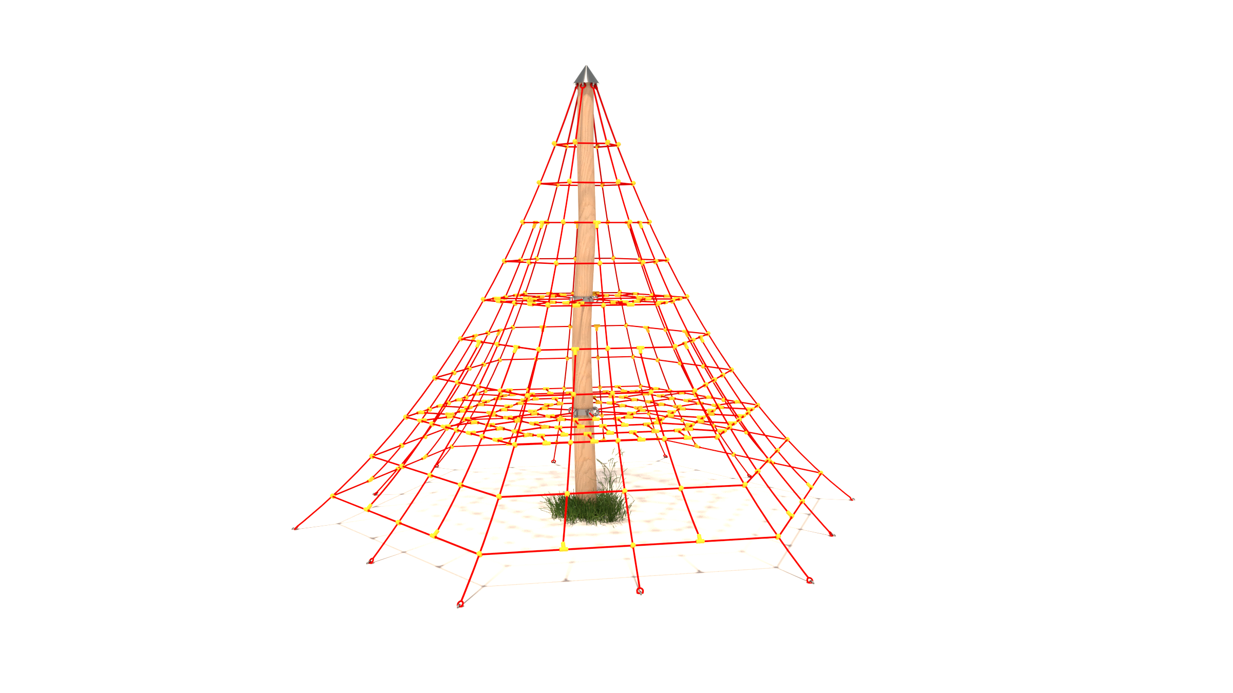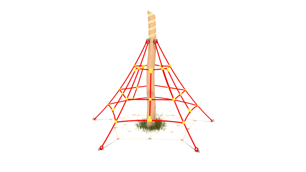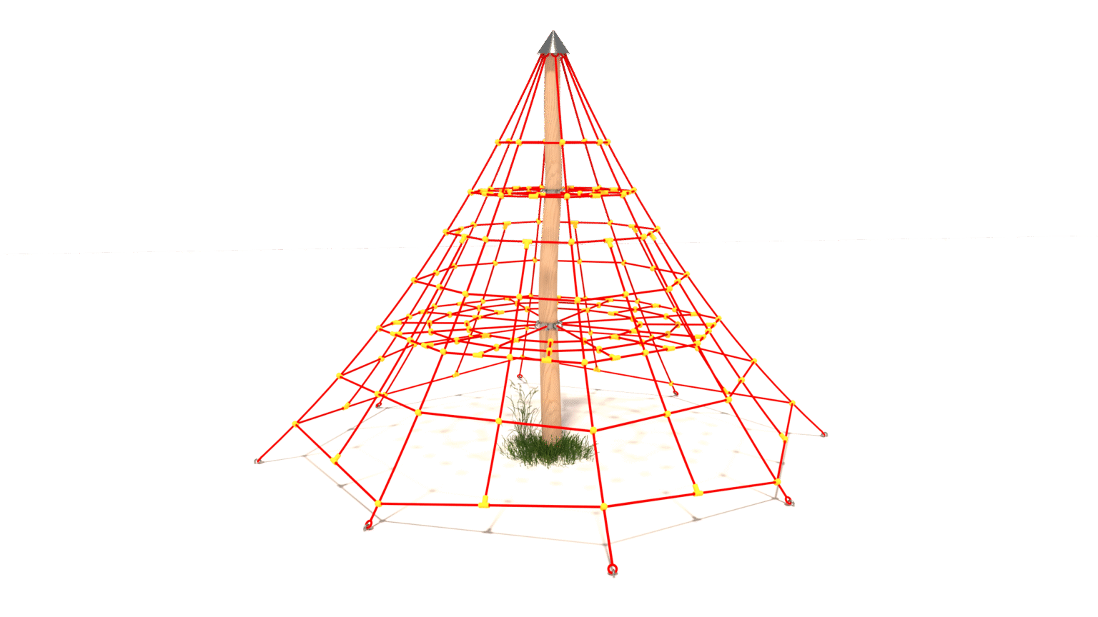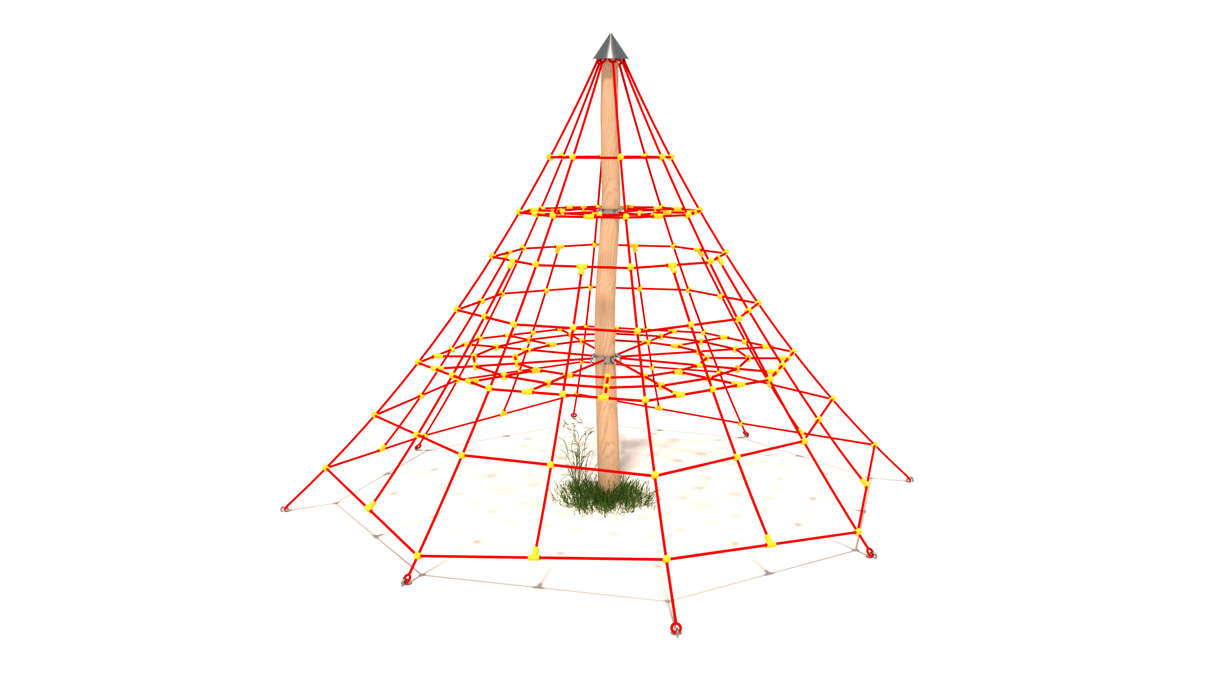 Lanová pyramida RUNER je dominantní prvek dětského hřiště, který zaujme nejen svým výškovým provedením, ale i funkčním designem. Díky promyšlené síťové konstrukci umožňuje dětem šplhat, lézt a rozvíjet rovnováhu i koordinaci pohybů. Centrální sloup z akátového dřeva poskytuje stabilitu a přirozený vzhled, zatímco kvalitní lanová síť zajišťuje bezpečný a zároveň dobrodružný zážitek.